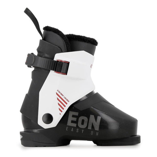 The Alpina EON is a junior alpine ski boot designed to make skiing hassle-free for both kids and parents. With a soft flex and lightweight construction, it ensures comfort and ease of use on gentle slopes. The standout feature is its innovative Easy Entry system, which allows an exceptionally wide opening for effortless stepping in and out — perfect for young skiers. The anatomically shaped shell plus GripWalk-compatible sole enhance walking comfort and overall usability.